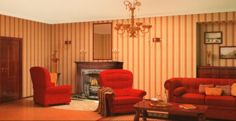 Работы по выравниванию стен и полов и монтаж новых инженерных коммуникаций стали необходимыми для приведения квартиры в порядок. Местоположение здания и внутренняя планировка сами подсказали стилистику оформления помещений. Расцветка и рисунок обоев, повторяющих моду начала прошлого века, мощная мебель, массивные двери, изящные светильники, огромные зеркала – всё работает на создание образа надёжного и уютного жилища. И действительно, очутившись в этой квартире, всеми фибрами ощущаешь былое имперское величие, стабильность и солидную неспешность жизни, восстанавливаемые сегодня огромными усилиями.