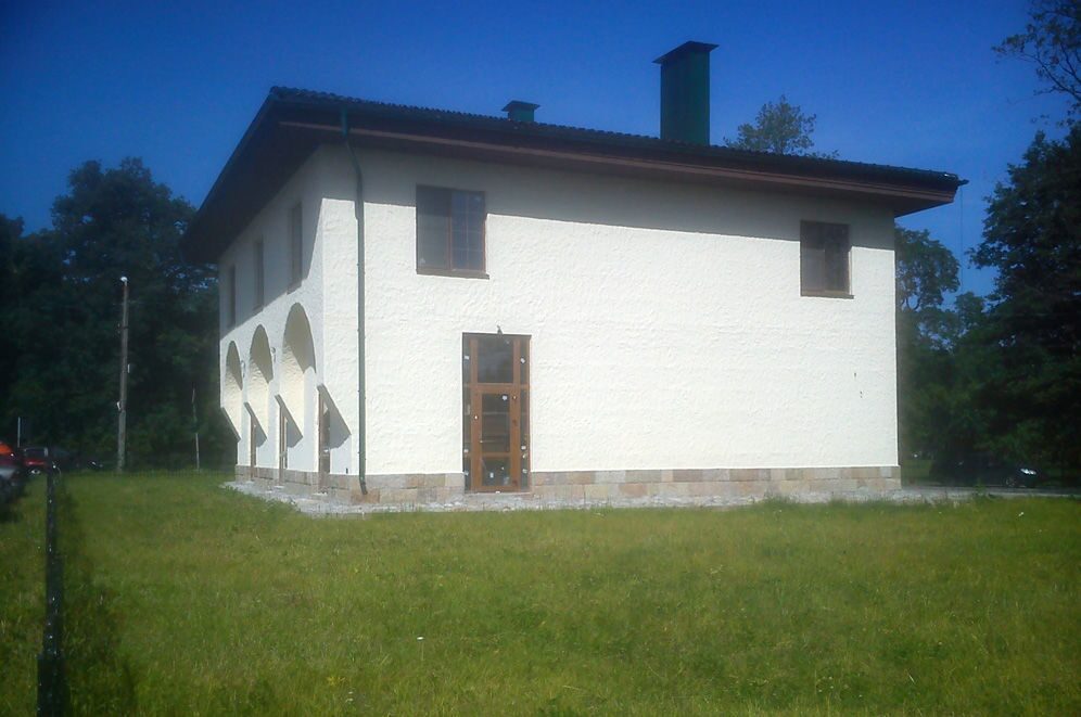Выбирая материалы для мощения дорожек и площадок бытового комплекса, мы руководствовались критериями практичности, надёжности, красоты и эстетичности. Предпочтение было отдано колотому граниты, как материалу, наиболее подходящему к нашему климату – прочному, морозоустойчивому, износостойкому, к тому же давно ставшему негласным символом Петербурга и его пригородов. Чтобы подчеркнуть скромную и суровую