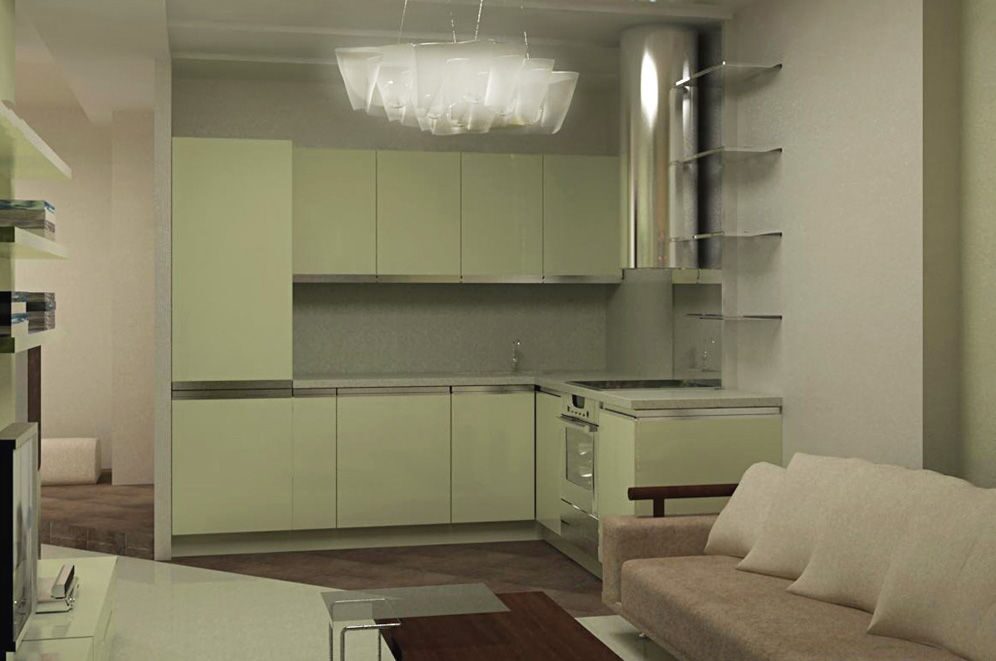 Дизайнеры нашей компании, осуществляющие проектирование интерьеров, превратили эту стандартную, самую обыкновенную однокомнатную квартиру в необычайно уютное и предельно функциональное жилище. Для рационального использования площади в неудобных для расстановки мебели углах были сделаны встроенные шкафы, довольно просторная кухня превратилась в кухню-гостиную, продуманное расположение сантехники в санитарном узле сделало его визуально просторнее. Для колеровки был выбран фисташковый цвет, гармонично сочетающийся с разнообразными оттенками коричневого и бежевого. Единого стиля в квартире нет. Стилизованные под старину люстра и кровать в спальне прекрасно уживаются с устроенными в гипсокартонной конструкции нишами-полками, а нежный цвет стен кухни-гостиной не вступает в диссонанс с хромированными элементами отделки.
