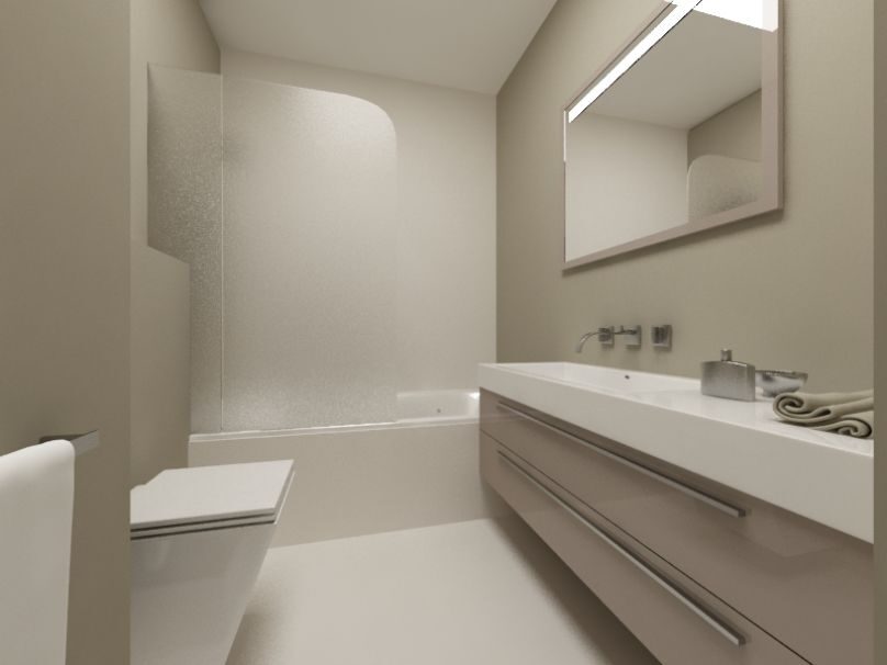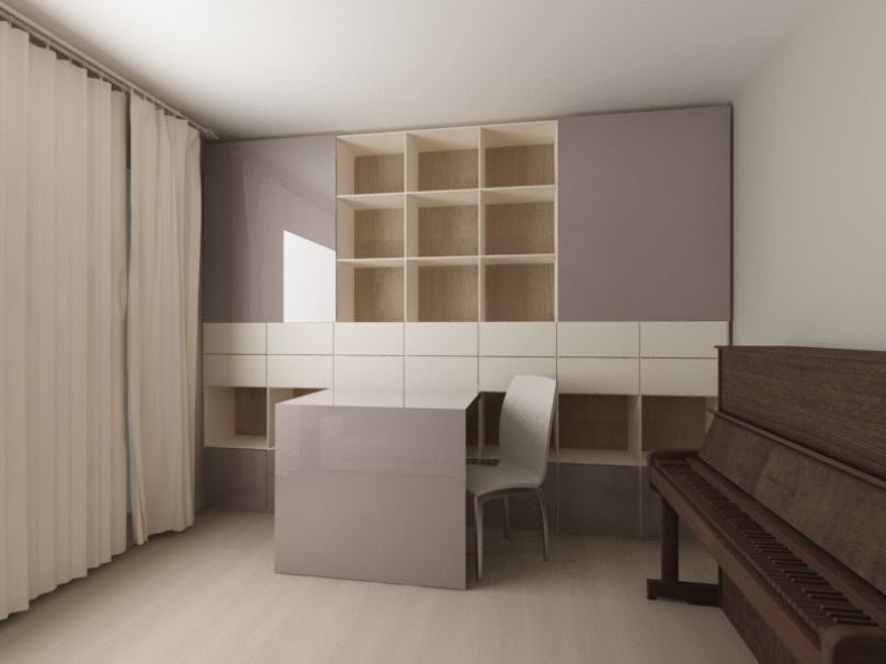 Добиться невероятно приятного чувства безмятежности и ласковой «домашности» удалось цветовыми комбинациями. Приглушённый белый очень плавно вливается где в серовато-сиреневый, где в слегка затуманенный фисташковый, где в нежно бежевый цвет. Оказалось, эти вкрадчивые тона, казалось бы, совершенно не подходящие к прямолинейным и акцентировано прямоугольным формам, великолепно их сглаживают и смягчают.