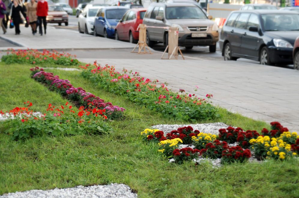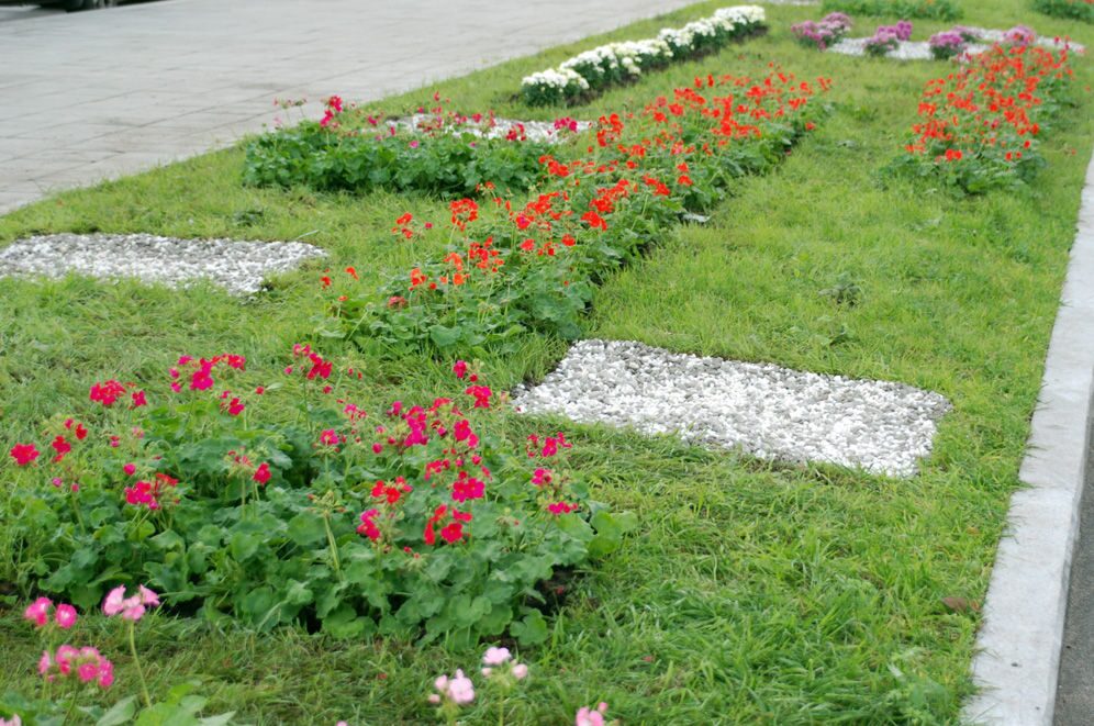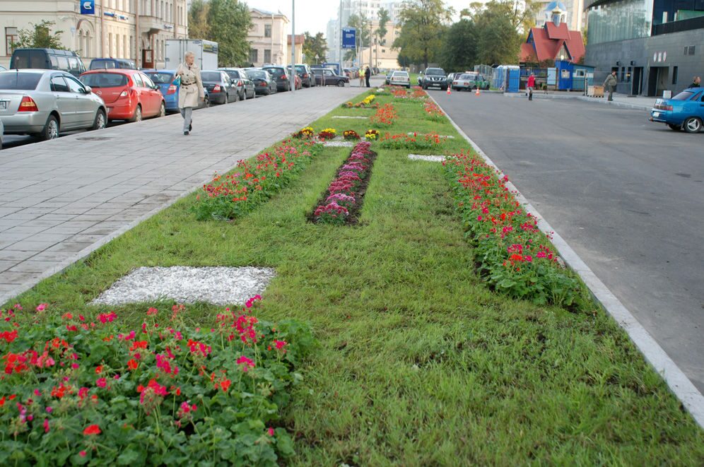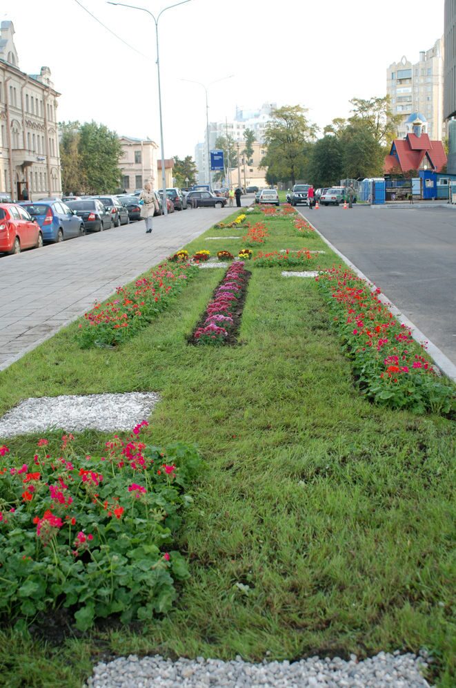 Банк – учреждение солидное и подход к благоустройству его территории должен быть соответствующим. Занимаясь этим проектом, компания «Зелёный остров» сделала акцент не на роскошном ландшафте, а на аристократичной простоте и элегантности. Тщательный выбор посадочного материала, выдержанная геометрия всей композиции, сочетание сочного и яркого газона с разбросанными на нём строгими прямоугольниками из мраморной и гранитной крошки невольно привлекает внимание, подсознательно ассоциируя этот ландшафт с местом нахождения банка. Кроме рекламно-эстетической, газон несёт и чисто утилитарную нагрузку, разделяя тротуар и парковочную площадку перед зданием.
