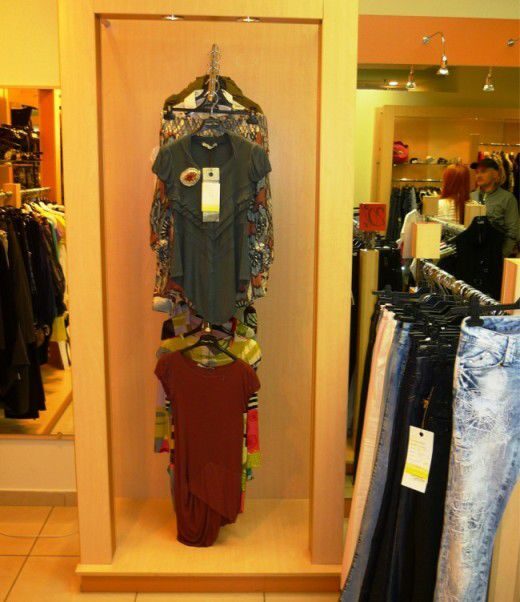 Оформляя этот бутик мы, проработав и рассмотрев несколько кардинально противоположных по стилю вариантов, остановились на единственном, который удовлетворил всех. Достаточно яркая, но не резкая общая цветовая гамма бросается в глаза посетителям, находящимся на верхних этажах торгового центра. Тёплый жёлтый колер очень хорошо воспринимается человеческим мозгом и побуждает покупателя подольше находиться в такой обстановке, ведь основная задача дизайнера при оформление интерьеров магазинов – привлечение подвластными ему средствами клиентов, создание для них комфортной обстановки и побудить тем самым к покупкам.