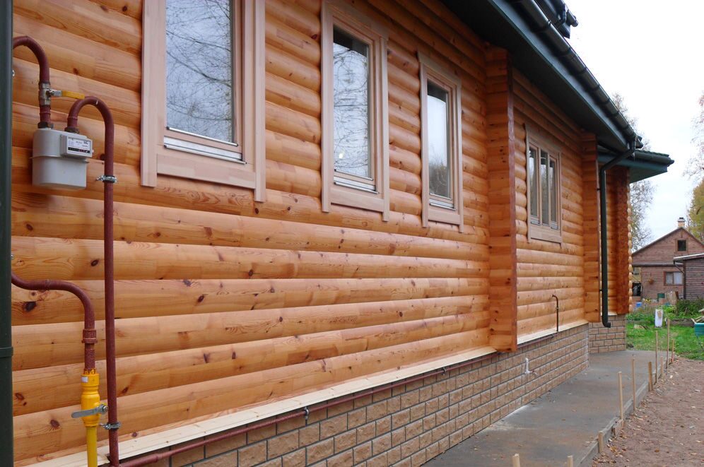 Наиболее часто возводятся деревянные дома для последующей отделки лицевым кирпичом, пластинами натурального камня или его имитацией. Причём имитация камня используется гораздо чаще. Вызвано это не только достаточно высокой стоимостью натурального сырья, но и многократным увеличением нагрузки на фундамент, которая происходит, если облицовка ведётся природными материалами. Наружная отделка деревянного дома камнем или его аналогом даёт двойной эффект – изнутри постройка экологична, а снаружи прочна и долговечна, устойчива к влаге и повреждениям, солидна и визуально мощна. Подобная облицовка отлично подходит не только деревянным постройкам, но и домам из газобетонных и керамических блоков, монолитного железобетона. Но просчитываться подобный вариант должен уже на стадии проектирования, так как фундамент потребуется не просто усиленный – монолитный ленточный, но и увеличенный по ширине на наружном периметре для учёта кирпичной или каменной кладки. Подобная отделка домов цены имеет довольно солидные, но результат, конечно, того стоит.