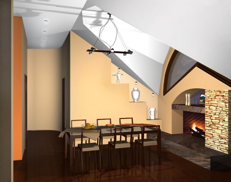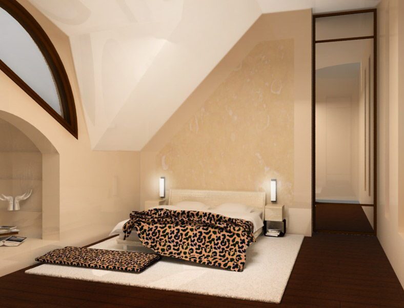 Столовая с камином, гостиная, спальни, холлы и ванные комнаты оформлены и оснащены тоже в соответствии со вкусами европейского жителя. Все они имеют ярко выраженную индивидуальность, но выдержаны в рамках единого стиля. В создании интерьеров были использованы многие интересные дизайнерские находки, например многоуровневые потолки или декорирование стен ступенчатыми полками.