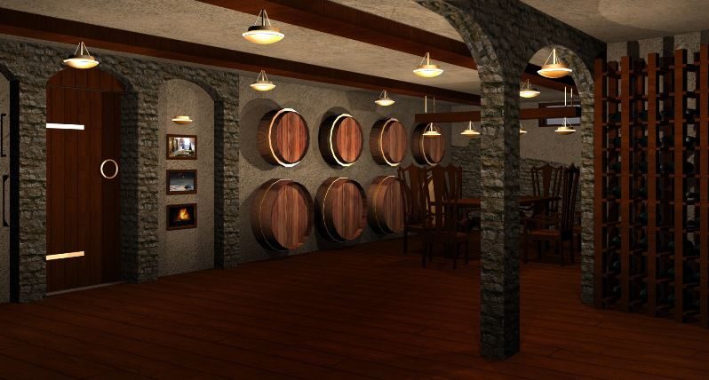 Проведя весь необходимый цикл отделочных работ, мы сумели объединить одной концептуальной идеей совершенно разнопланово оформленные помещения. Коттедж – место для относительно большой семьи, к которой часто приезжают в гости друзья, устраиваются вечеринки и праздники. Учитывая это, мы создали музыкальную комнату, в которой можно устроить небольшой концерт или танцевальное пати, а для весёлых посиделок или задушевной беседы оборудовали стилизованный винный погребок.