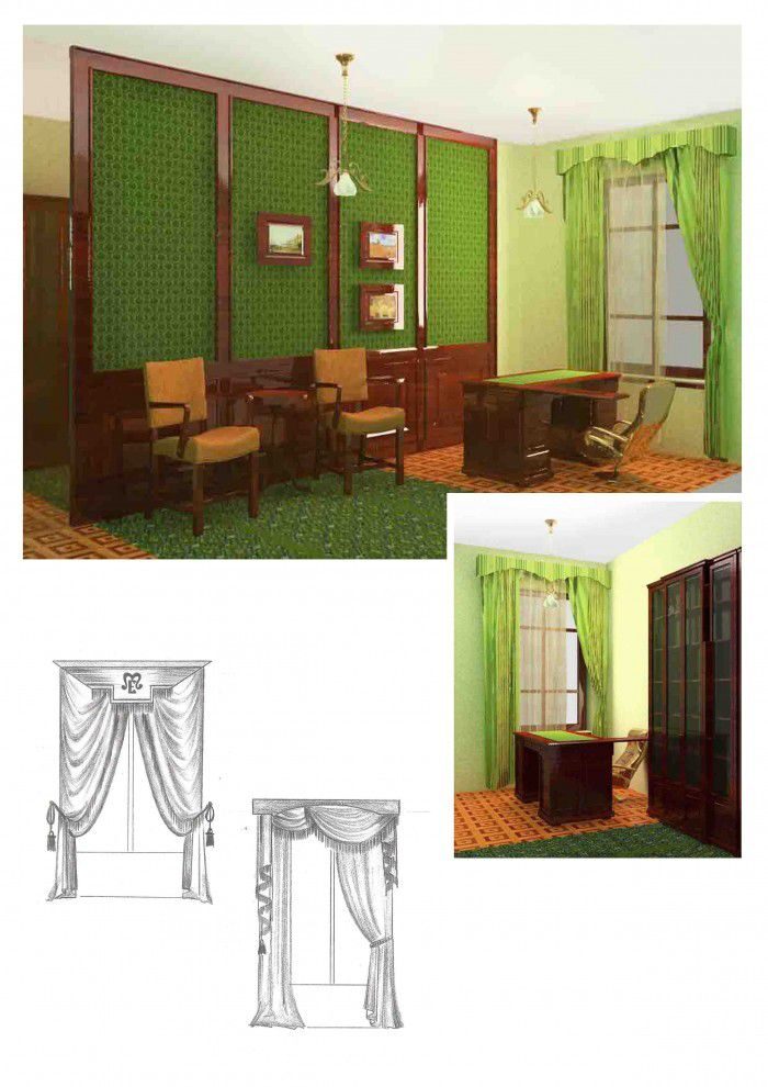 Работы по выравниванию стен и полов и монтаж новых инженерных коммуникаций стали необходимыми для приведения квартиры в порядок. Местоположение здания и внутренняя планировка сами подсказали стилистику оформления помещений. Расцветка и рисунок обоев, повторяющих моду начала прошлого века, мощная мебель, массивные двери, изящные светильники, огромные зеркала – всё работает на создание образа надёжного и уютного жилища. И действительно, очутившись в этой квартире, всеми фибрами ощущаешь былое имперское величие, стабильность и солидную неспешность жизни, восстанавливаемые сегодня огромными усилиями.