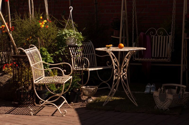 Стиль загородного дома и прилегающего участка определяют не только высаженные растения и тип планировки. Важную роль играет и садовая мебель. Обустраивая территорию этого коттеджа, мы сделали акцент именно на садовой мебели и малых архитектурных формах. Нами была произведена посадка деревьев и кустарников, некоторые из которых должны были выглядеть, как старый разросшийся сад. По нашим эскизам были изготовлены ажурные металлические стулья и столы, которые мы разместили в уютных и потаённых местах. Для декорирования дорожек был использован тротуарный кирпич, прекрасно вписавшийся в общую концепцию воссоздания атмосферы старинного дворянского сада. Устроенные нами красивые цветники и изготовленные в том же стиле, что и стулья со столами витиевато изогнутые скамеечки, подставки и оградки подарили неповторимый шарм каждому уголку приусадебного участка.