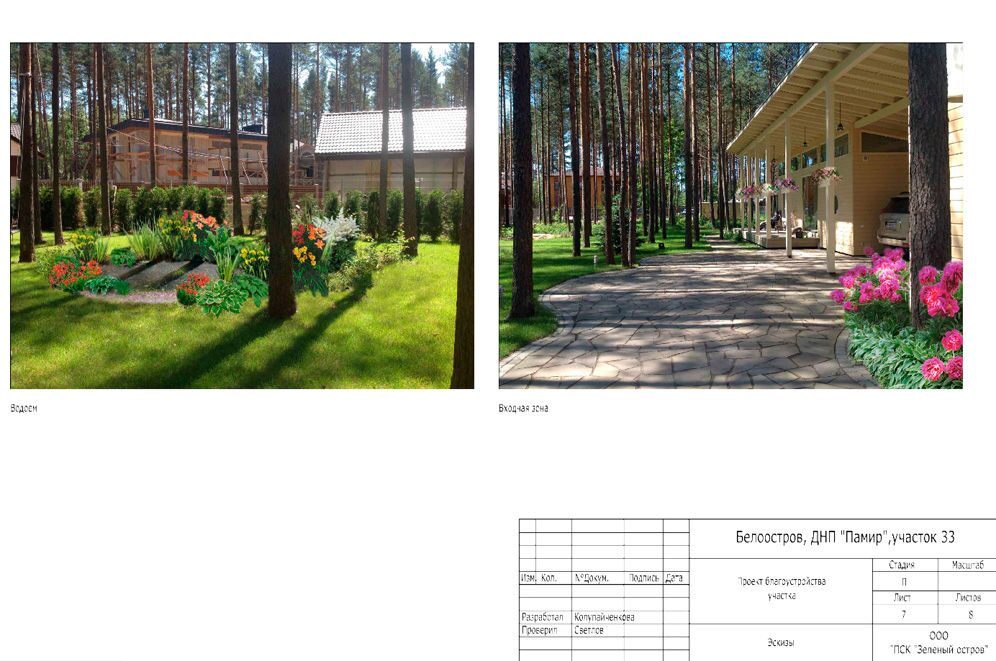 Проводя благоустройство территорий и участков, подобных этому, находящемуся в Белоострове, мы стараемся максимально использовать великолепную природу северо-запада. Нет лучшего украшения на даче, чем взлетающие ввысь струны сосен. Мы только чуть-чуть подчеркнули их стройность яркими пятнами посадок не характерных для севера цветов и вкраплениями невысоких декоративных деревьев. Общий стиль участка – северная лаконичность и простота, свойственные Карелии и Скандинавии. В этом ключе выдержаны и дом, и все постройки, и мощёные дорожки, выложенные диким камнем разной конфигурации. Но сдержанная простота в ландшафте, как и удачный экспромт, требует серьёзной подготовки. Так, прежде чем приступить к высадке посадочного материала и разбивки дорожек, мы спроектировали и создали оптимальную для участка дренажную систему с ливневой канализацией. Тщательная проработка деталей будущего ландшафта и эскизное проектирование расположения деревьев, цветов, кустарников и позволили сделать территорию такой естественной, как будто человек её и не касался вовсе.