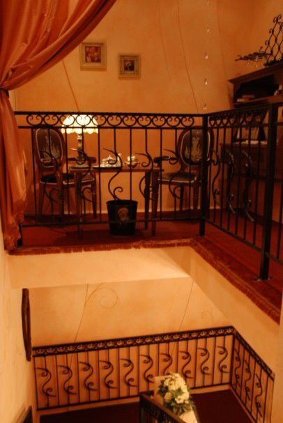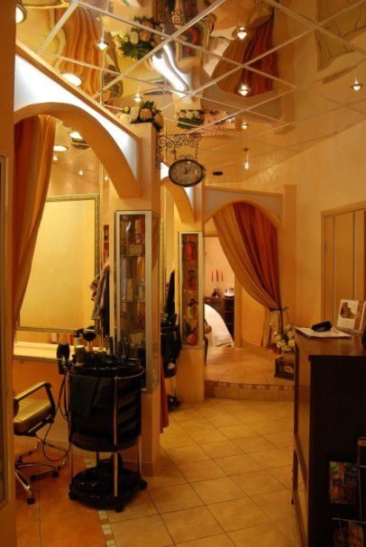 Создавая интерьер салона красоты «Винтаж» нам удалось чудесным образом пропитать отремонтированные по новейшим технологиям стены неповторимым духом столетней давности, очень органично объединить современные зеркальные и гипсокартонные потолки и облицовочные материалы со стилизованной под позапрошлый век мебелью, коваными перилами и оградками, нежными и кокетливыми драпировками.